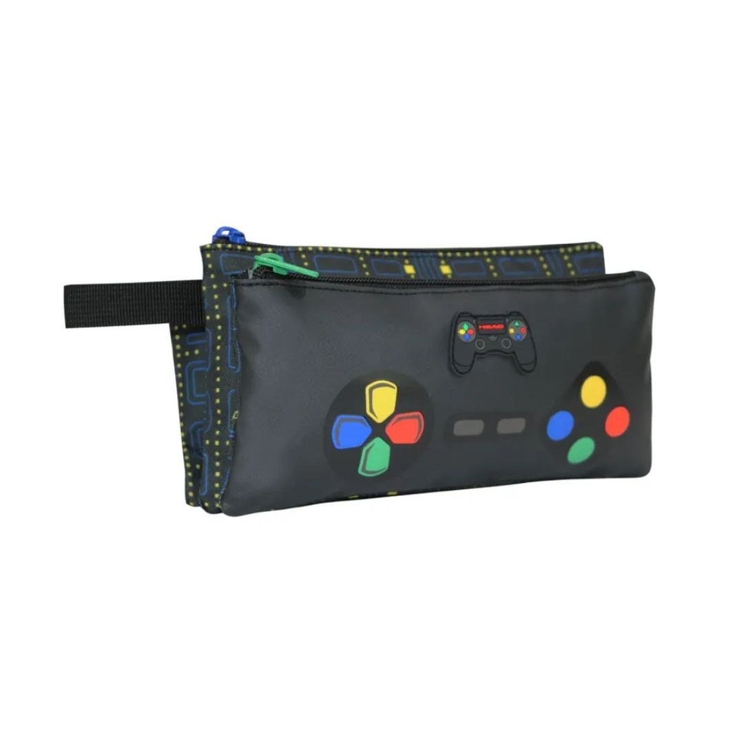 Aplicación de estampados en combinación con detalles en cierres, tiradores y aplicación de telas brillantes para infantil. Celerio de Head es un estuche de gran capacidad con tres compartimentos independientes con cierre, forrados y con diseño interior. Tiene un asa lateral para un fácil transporte, costuras reforzadas y cierre autorreparable.