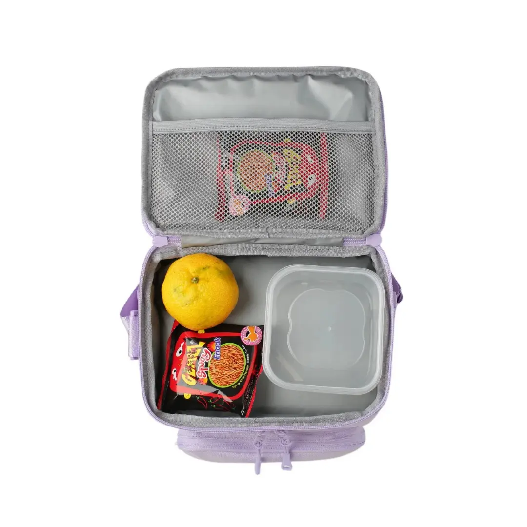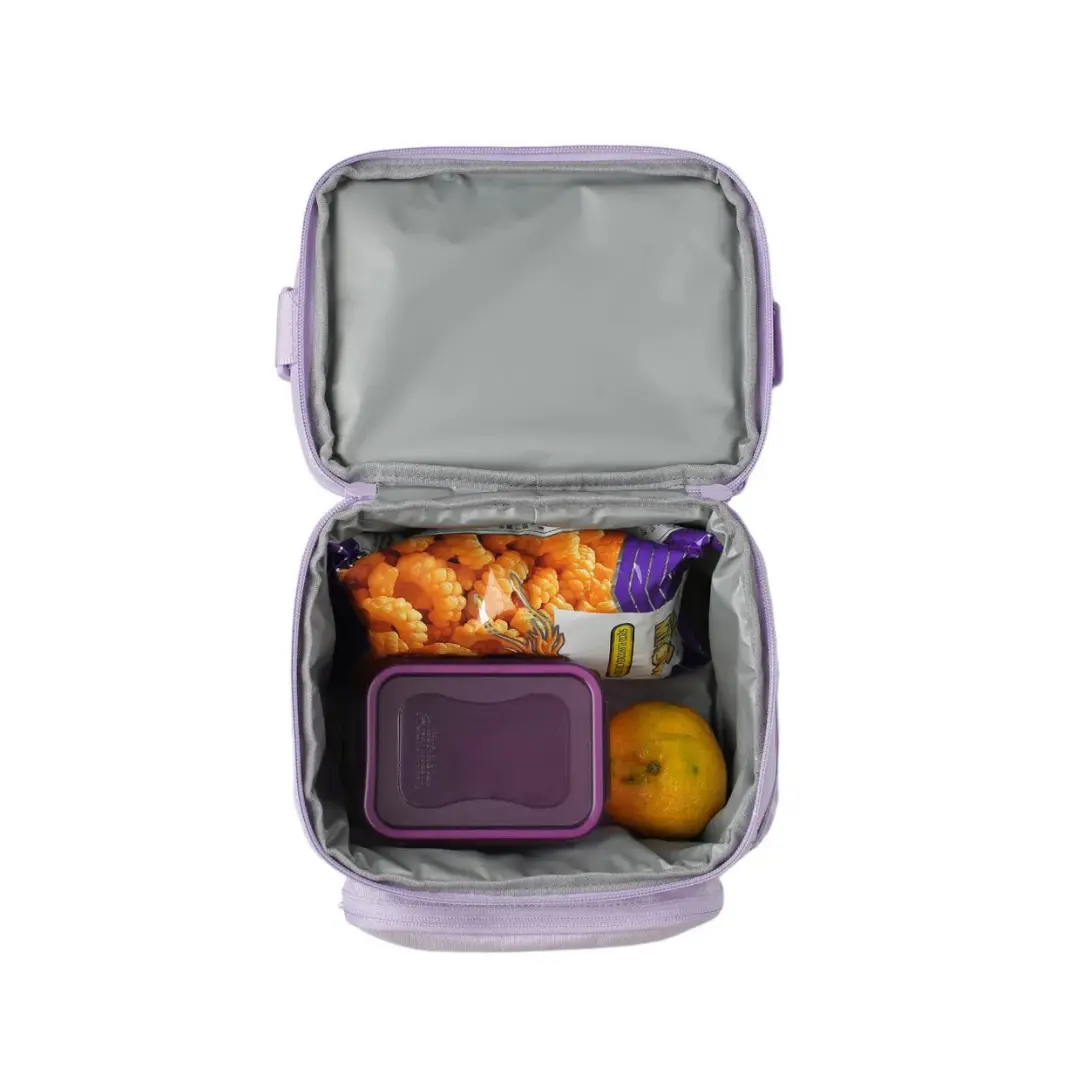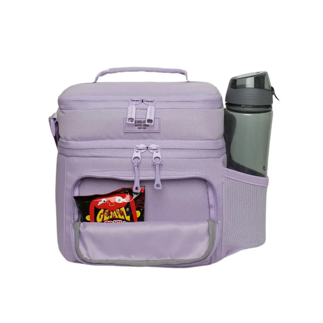 La lonchera Iglú es una opción moderna, práctica y de gran capacidad. Cuenta con dos compartimentos independientes que permiten organizar alimentos cómodamente. Incorpora bolsillo exterior con cierre y bolsillo lateral de malla. Su interior completamente forrado en aluminio y PVC facilita la limpieza y conserva la temperatura. Incluye huincha trasera para fijarla a mochilas con carro y correa ajustable para llevar al hombro. Ideal para quienes buscan organización, comodidad y resistencia en su día a día.