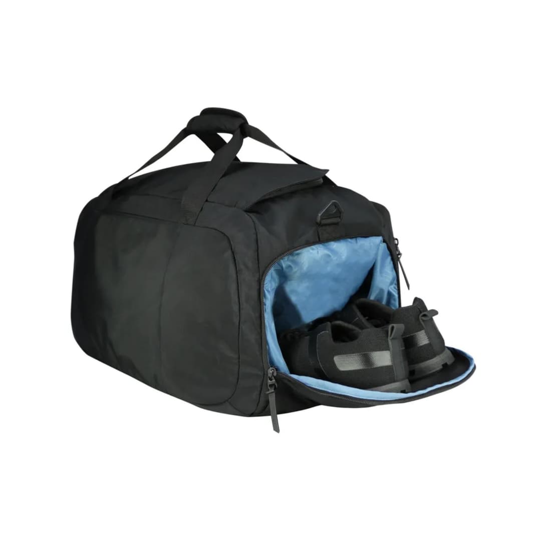 El bolso Burpee cuenta con una gran abertura superior con cierre, bolsillo interior de malla con cierre, bolsillo lateral para ropa sucia o zapatos, bolsillo lateral simple de malla, amplio bolsillo frontal de fácil acceso, bolsillo frontal con cierre cubierto, huincha ajustable para llevar al hombro con mosquetón desmontable y tirantes centrales con asa acolchada y velcro. Ideal para que puedas mantener tus pertenencias ordenadas en tus viajes y en tus salidas deportivas.