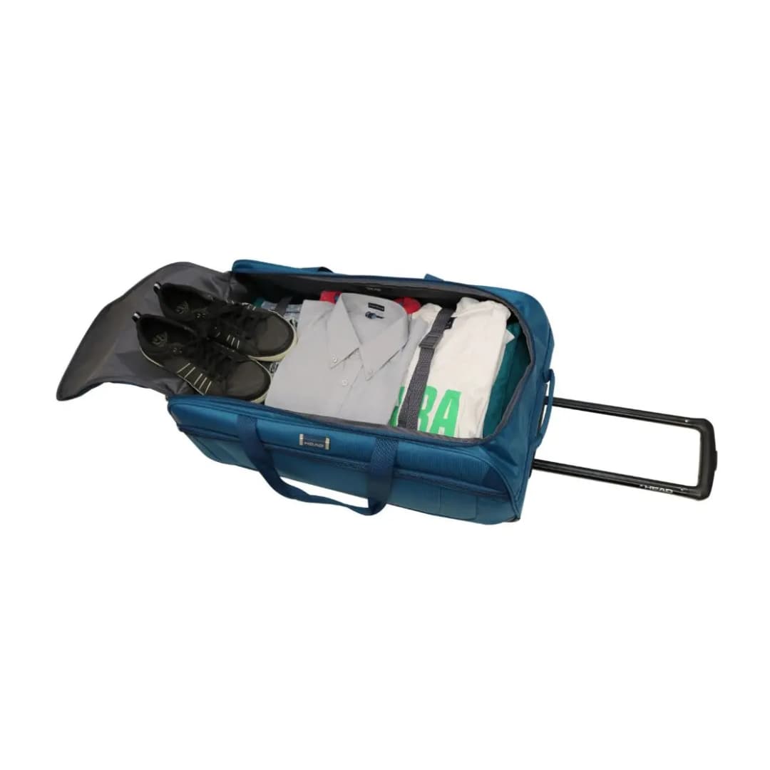 El bolso con ruedas Grecia de Head es una maleta especialmente diseñada para que viajar con comodidad y estilo. Presenta un amplio bolsillo interior con argollas portacandado, bolsillo interior con malla para guardar lo que necesites, un bolsillo frontal para tus objetos de fácil acceso y tirantes centrales con asa acolchada.