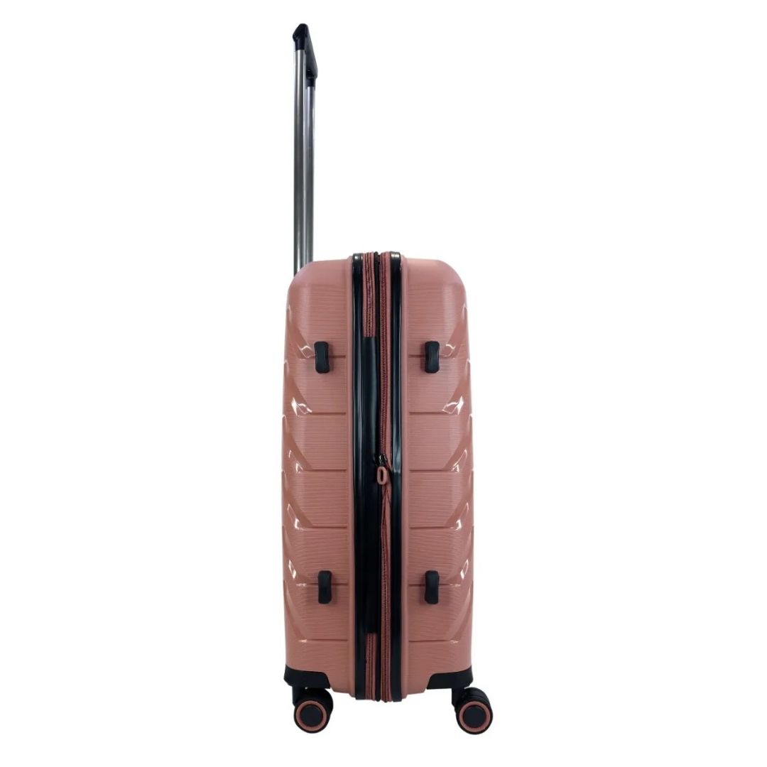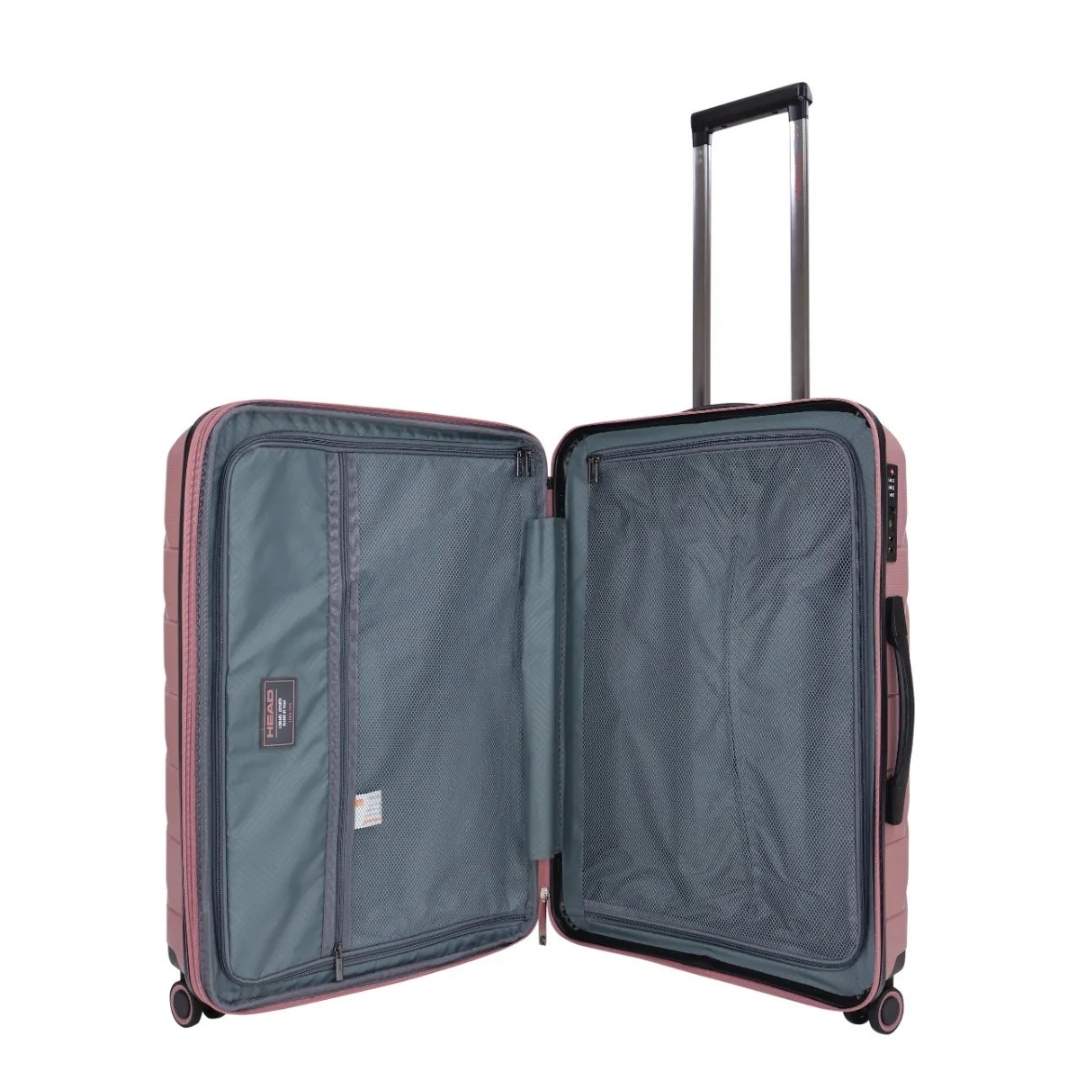 Tiene un diseño vanguardista, moderno, con colores full tendencia únicos en la industria que solo se logran con la última tecnología en materialidades y coloración. Cuenta con cierres YKK (mejores cierres del mundo), candado TSA con clave integrado al cuerpo, 8 ruedas 360 montadas en rodamientos de deslizamiento suave, carro de aluminio ultrarresistente retráctil de 3 posiciones, manilla retráctil superior y lateral con silicona para un mejor grip y suavidad. Por otra parte, en su interior tiene bolsillo con malla en ambos lados, además expandible para aumentar su capacidad.