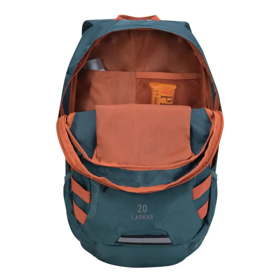Lleva la mochila outdoor Laskar a todas partes. Su diseño brinda una gran capacidad para llevar tus objetos a cualquier viaje. Además, sus cómodos tirantes acolchados te permitirán llegar lejos en tu aventura. Laskar es una mochila que posee un amplio compartimento principal con organizador, un bolsillo frontal con argolla porta llaves, 2 bolsillos laterales con malla para botellas, posee detalles en material reflectante para fácil visualización, tirantes y espalda acolchada con ajuste frontal.