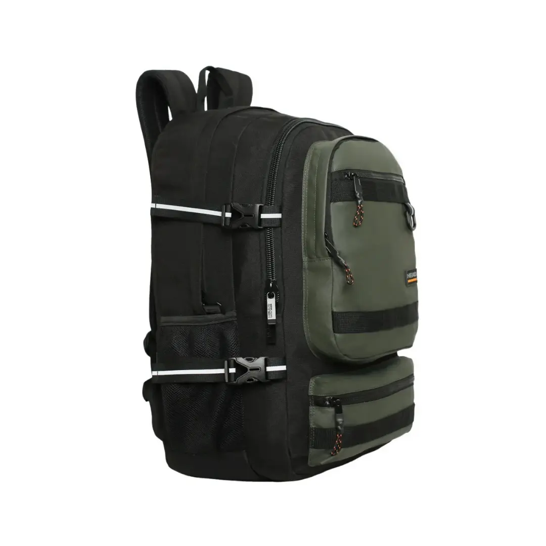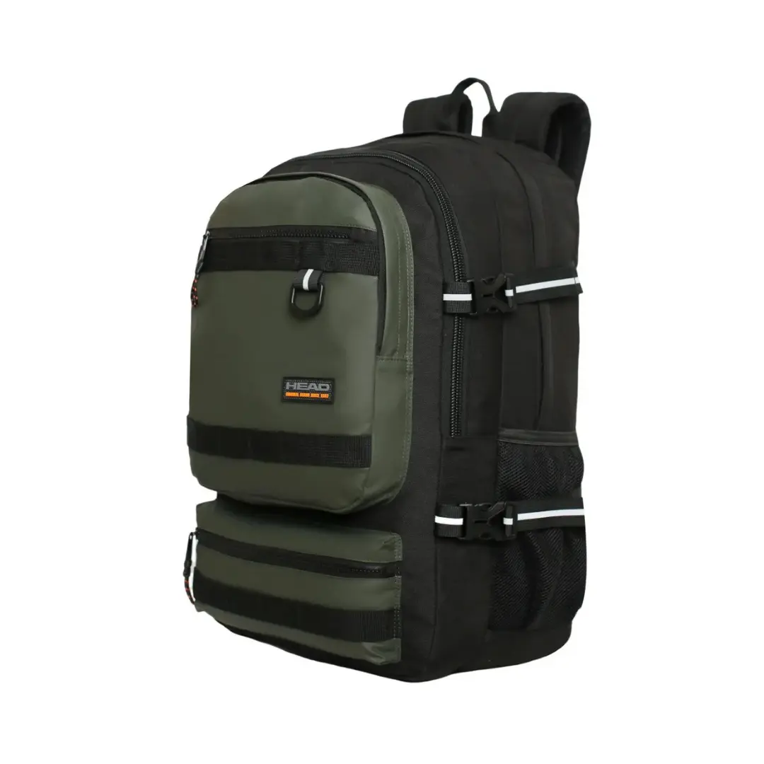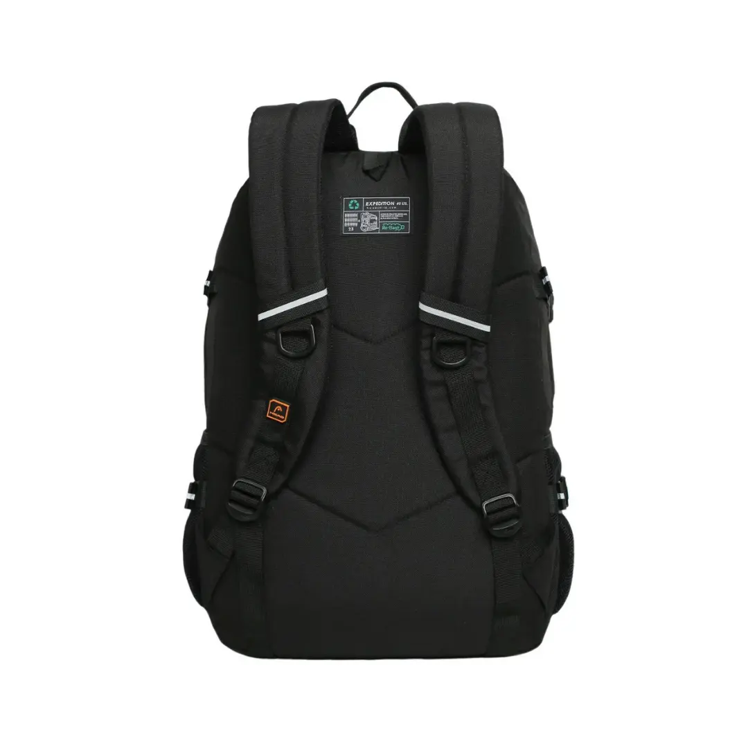 La mochila Expedition destaca por su gran tamaño, diseño tecnológico y compromiso con el medio ambiente. Está fabricada con materiales reciclados equivalentes a 23 botellas, reafirmando su enfoque sustentable. Cuenta con dos amplios compartimentos, bolsillo de malla interior, dos bolsillos frontales independientes y dos bolsillos laterales para botellas. Su compartimento principal incluye porta laptop de hasta 16″. Los detalles reflectantes y tiradores tipo cordón aportan seguridad y estilo. Recomendada para usuarios exigentes que buscan máxima capacidad, diseño moderno y conciencia ecológica.