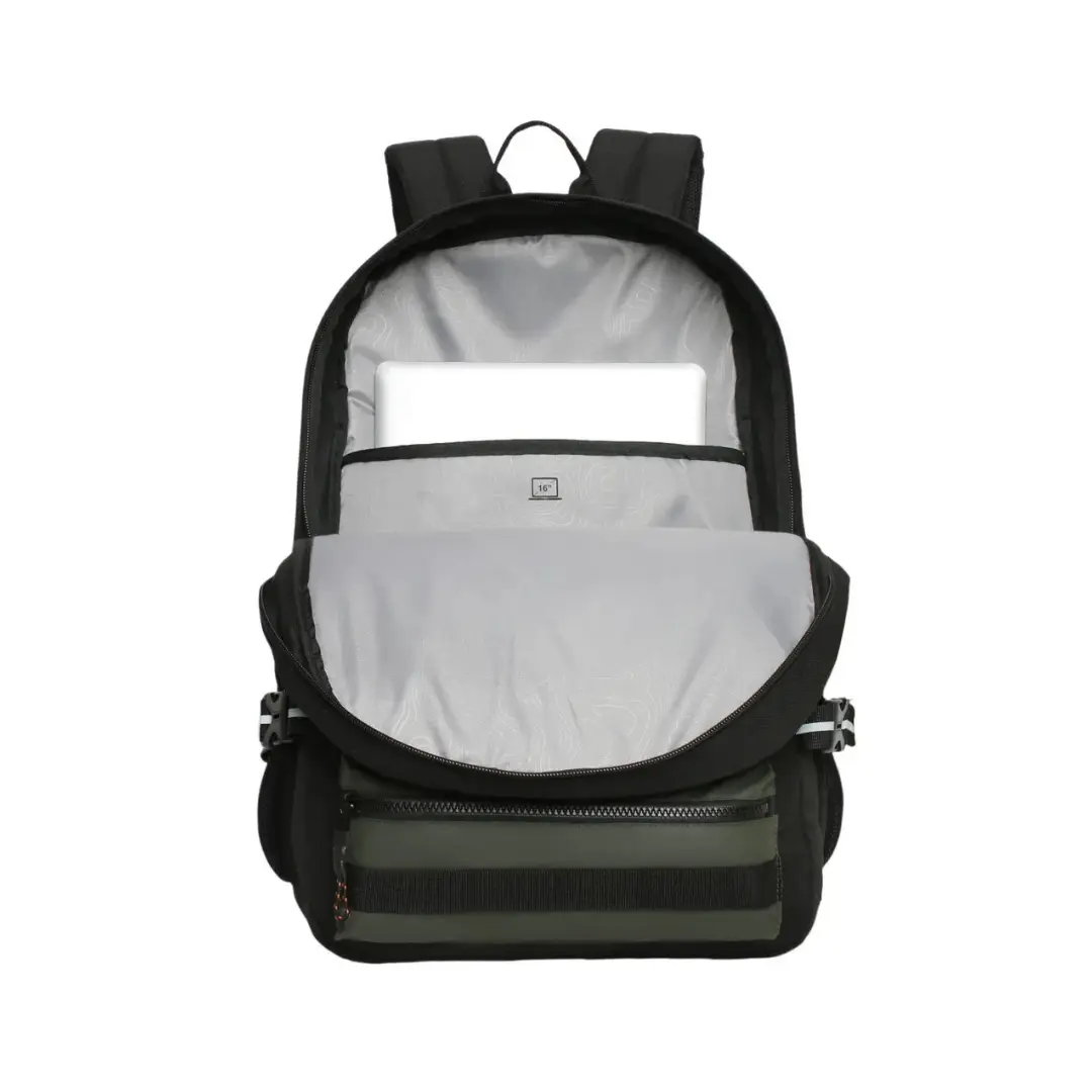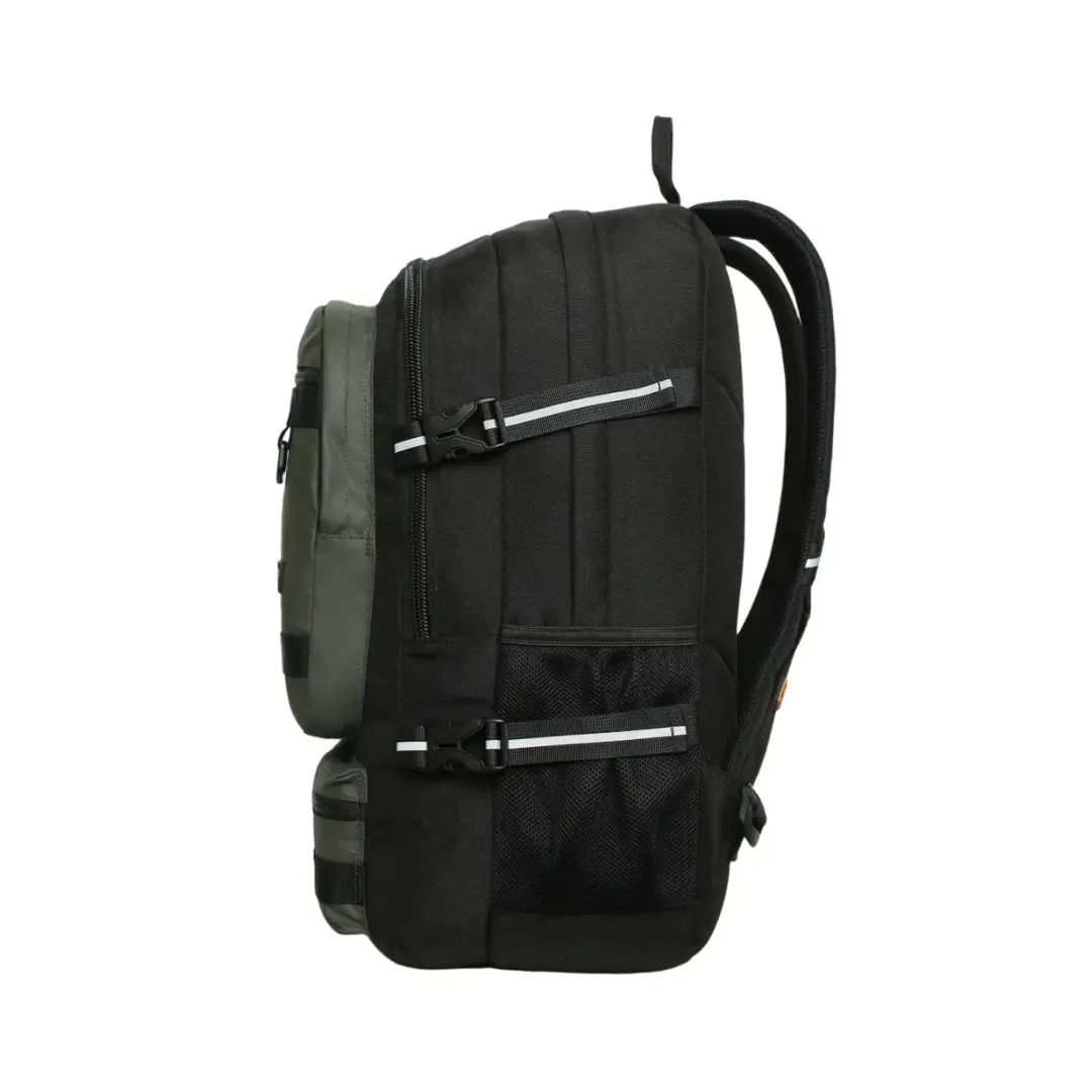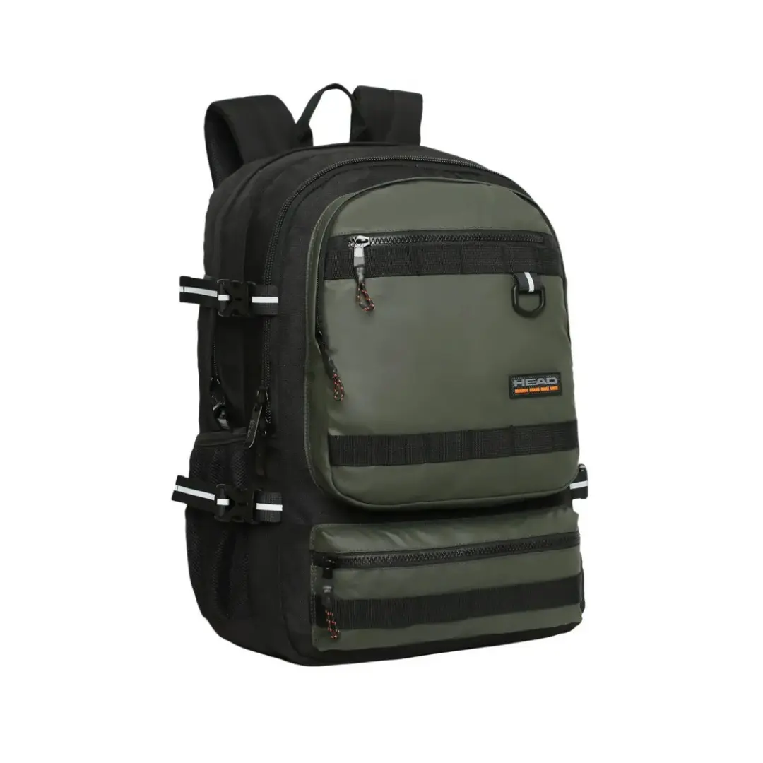 La mochila Expedition destaca por su gran tamaño, diseño tecnológico y compromiso con el medio ambiente. Está fabricada con materiales reciclados equivalentes a 23 botellas, reafirmando su enfoque sustentable. Cuenta con dos amplios compartimentos, bolsillo de malla interior, dos bolsillos frontales independientes y dos bolsillos laterales para botellas. Su compartimento principal incluye porta laptop de hasta 16″. Los detalles reflectantes y tiradores tipo cordón aportan seguridad y estilo. Recomendada para usuarios exigentes que buscan máxima capacidad, diseño moderno y conciencia ecológica.
