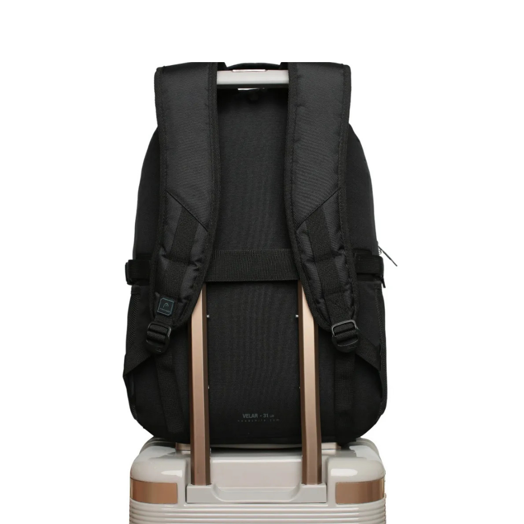 Velar es una mochila de gran capacidad con diseño moderno. Cuenta con compartimento principal amplio con porta laptop acolchado de hasta 16″ y compartimento secundario con organizador doble de malla. Su bolsillo frontal con cierre waterproof aporta seguridad y estilo. Incluye bolsillos laterales de malla y ajustes de compresión para regular la carga. Ideal para uso diario, estudios o trabajo.